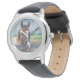 Uhr, Vintage Männeruhr mit schwarzem Lederarmband