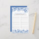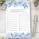 Brautparty Game Antwort Blatt, personalisiert mit dem Namen der Braut oder die Braut und Bräutigam. Blauer Blumenanstrich mit Blüten und blühender Blume. Ideal für alle Fragen und Ratings zu Hochzeiten oder Brautpartys mit nummerierten Zeilen, damit Ihre Gäste bis zu 20 Antworten zusammenfassen können.