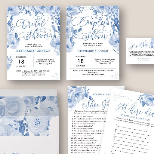 Dusty Blue Watercolor Floral Bridal ShowerDesignt von Darling & May