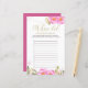 Brautparty-Spielkarte, personalisiert mit den Namen der Braut und Bräutigam. Rosa Blumendesign mit Aquarellblüten und Blattwerk, Goldknospen und eleganter Kalligraphie. Für das Hochzeitsspiel oder das Brautparty Foto "Wo waren sie?" oder "Wo sind sie hingegangen?" mit nummerierten Zeilen für Ihre Gäste, um bis zu 12 Antworten.