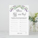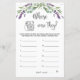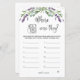 Wo waren sie Brautparty-Spiel. Dieses Design zeigt eine Abbildung von Eukalyptus-Blätter und lila Lavendel-Blume im Aquarellstil. Der Text "Wo waren sie?" wird in einem Script-Schriftart geschrieben. Oben - Silbereffekt Konfetti.