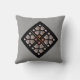 Zwei Entwürfe ausschließlich gemacht für dieses Kissen. Die Entwürfe wurden durch die Zementbrisenblöcke inspiriert, die in der Architektur während der Mitte des 20. Jahrhunderts benutzt wurden. Dieses Kissen ist wie zwei Kissen in einem, weil jede Seite ein unterschiedliches hat, aber in Verbindung stehend, Entwurf. Farben im Entwurf sind grau ein Orangerotes, schwarz und. ©2013