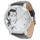 Uhr, Vintage Männeruhr mit schwarzem Lederarmband