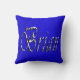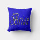 Auf diesem blauen Mosaikkissen ist ein schwarz-weißes Brian-Logo aus Zahlen zu sehen.
