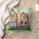 Dieses Kissen hat ein gemütliches Ziegelhaus, auf dem es abgebildet ist.