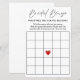 Fügen Sie Ihrem Brautparty etwas Spaß hinzu, das sicher ein Hit für alle sein wird. Geben Sie jedem Gast eine Karte und lassen Sie ihn die Quadrate mit den besten Ratschlägen ausfüllen, was das glückliche Paar erhalten wird, und dann lassen sie die Quadrate markieren, die mit dem Öffnen der Geschenke übereinstimmen. Personalisieren Sie diese, indem Sie die Namen des Paares und jeden beliebigen benutzerdefinierten Text hinzufügen. Verwenden Sie das Wertpapier, um das Schreiben zu erleichtern. Das schlichte Schwarz-Weiß-Kartendesign passt zu jedem Duschmotiv oder Dekor, das rote Herzstück auf dem Mittelplatz verleiht dem Ganzen einen romantischen Akzent, der die perfekte Touch für diesen besonderen Tag ist!