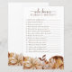 Bridal, der die Bride das beste Spiel kennt. Dieses elegante Brautparty-Spiel besticht durch einen schönen Rahmen aus Goldfolie, handbemalte Blätter aus bohfarbenem Orange- und Terrakotta, cremefarbene und beige Dahlien sowie wunderschöne rostfarbene Rose auf weißem Hintergrund. Finden Sie passende Artikel in der Brautparty Autumn Romance Collection.