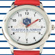 Kinderuhr aus Edelstahl mit rotem Lederarmband
