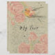 Schicken Sie Ihr Geschenk mit diesem Vintagen, bedrückten Design mit rosa Rosen, einem goldfinch Vogel und einem handgeschriebenen Brief.