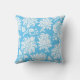 Dieses farbenfrohe Kissen ist mit einem knalligen, weißen Damast-Design auf einem hellblauen Hintergrund dekoriert.