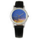 Uhr, Klassische Damenuhr mit schwarzen Lederarmband