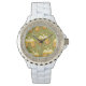 Eine wunderbare Damenuhr mit weißem Armband und grün-weiß-kariertem Ziffernblatt. Trägt sich ganz fabelhaft. Exzellenter Druck, sehr klare Farben. Schönes Design.
