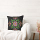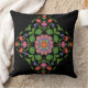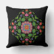 Ein schick gezogenes Kissen oder Kissen mit einem farbenfrohen Floral Rangoli-Muster auf einem schwarzen Hintergrund, das Sie mit dem Symbol 'Dropper' ändern können. Als Teil der Posh & Painterly 'Rangoli' Kollektion passt dieses Muster in jedes quadratische oder runde Kissen oder Kissen.