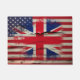 Lassen Sie eine rustikale Türmatte, die die US fixiert und Großbritannien zusammen die erste Sache ist, zum Sie zu grüßen, wenn Sie Zuhause kommen! Diese Türmatte kennzeichnet die amerikanische Flagge, die mit der Gewerkschaftsflagge auf rustikalem Holz mit der Farbe geverschmolzen wird, die weg abzieht.