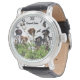 Uhr, Vintage Männeruhr mit schwarzem Lederarmband
