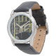Uhr, Vintage Männeruhr mit schwarzem Lederarmband