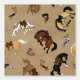 Ein geworfenes Muster mit Cowboys in farbenfrohen Kleider und knallhackigen Hähnchen, die von Broncos geworfen werden.
