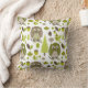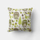 Ein Kissen, das ein Waldthemed Muster mit Illustrationen der braunen und grünen Eulen mit den Zickzack Bäuchen, den Eicheln, den immergrünen Bäumen und Blätter kennzeichnet.