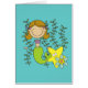 Eine braune haarige Meerjungfrau und gelbe Seesterne schwimmen zwischen den Algen, ein Design, das niedlich und farbenfroh für Mädchen, die Liebe des Ozeans und Meerjungfrauen! Meerjungfrau-T - Shirt, Karosseriebleume, Buben, Decken, Sticker, Taschen, Tasse, Schlüsselketten, Kissen, Wanduhren und viele andere Meerjunggeräte!
