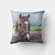 Ein braunes Pferd mit einem weißen Streifen auf seinem Gesicht steht in der Koppel auf diesem Wurfskissen der bunten TierLiebhaber. Fertigen Sie es mit Ihrem eigenen Titel besonders an.