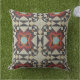 Schönes zeitgenössisches hellblau, verbrannt orange, hellrot, dunkelbraun und cremefarben Mosaikmuster im Stil der Indianer. Erhältlich auf einer Vielzahl von modernen Outdoor-Akzenten und Mode inspiriert Accessoires für die Dekoration Ihrer Veranda, Terrasse, Pool-Deck oder Hinterhof Sitzecke Ihres Strandhauses, Land-Hütte, Blockhütte, See- oder Flussurlaub Zuhause.