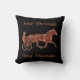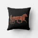 Silhouette-Geschirpferd Geschirr-Laufens braunes mit Wagen und Fahrer.