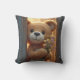 Brown Teddy Bear Holding a Wildblume Bouquet Kissen