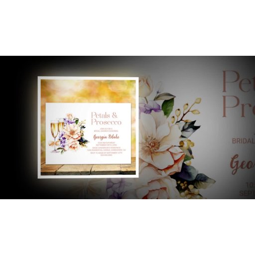 Laden Sie Ihre Freunde und Familie ein, um Ihr Brautparty mit dieser eleganten Einladung zu besuchen. Die Einladung enthält zwei Champagnergläser zwischen pfirsichfarbenen und rosa Blume. Sie können mühelos alle notwendigen Details zum anpassbaren Text hinzufügen. Um Ihre Einladungen einzigartig zu gestalten, können Sie aus verschiedenen Papiertypen und Eckstilen wählen. Zusätzlich haben Sie die Möglichkeit, die Einladung herunterzuladen.