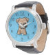 Uhr, Vintage Männeruhr mit schwarzem Lederarmband