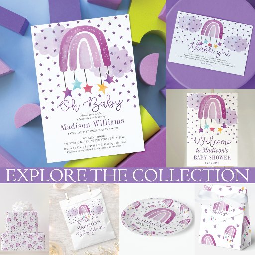 Lila Rainbow Baby Shower Pastel Design. Matching Produkte finden Sie in der Rainbow Baby Shower Kollektion.