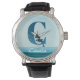 Uhr, Vintage Männeruhr mit schwarzem Lederarmband