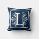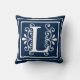 Buchstabe L Monogramm-Marine-Blau-Weiß Kissen