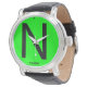Uhr, Vintage Männeruhr mit schwarzem Lederarmband
