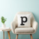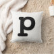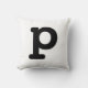 Kissen aus dem P-Alphabet in Schwarz-Weiß-Buchstaben.