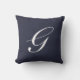 Personalisiertes Monogrammkissen mit einem klassischen Skriptbuchstaben G auf einem Marine-Blauhintergrund. Gemacht in den USA von der waschbaren Baumwolle oder dem Polyester der Maschine. Vervollkommnen Sie für Gladys, Graciela, Gretchen, Georgia, Giselle, Genevieve, Gianna, Gloria, Genese, Gina, Gabriela, Gabriella, Gabrielle, Anmut, oder jemand anderes, das Namens ist, fängt mit dem Buchstaben G. an.