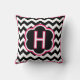 Letter H. Hübsche Monogramm (Single inital) werfen Kissen. Dicke schwarz-weiße Zickzack-Streifen (Zickzack), mit weißer und fuchsienfarbener Dekoration und einem Single in der Mitte. Unsere Kissen sind in drei Größen erhältlich: 16" x 16" Quadrat, 20" x 20" Quadrat, oder ein Lendenkissen, das 13" x 21" ist, und entweder Baumwolle oder Polyester. Produziert von nachhaltig beschäftigten Single Müttern in den USA, trägt Ihr maßgeschneiderter Kissenkauf dazu bei, den Teufelskreis von Armut für Single Mütter und ihre Kinder zu durchbrechen, während es in Ihrer Zuhause großartig aussieht! Von Scarebaby Design, gestützt durch die Zazzle-Garantie.