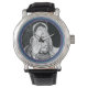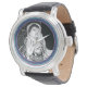 Uhr, Vintage Männeruhr mit schwarzem Lederarmband