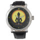 Uhr, Vintage Männeruhr mit schwarzem Lederarmband