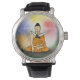 Uhr, Vintage Männeruhr mit schwarzem Lederarmband