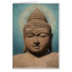 Schönes Buddha-Portrait auf einem blauen "marmorierten" Hintergrund zum Anpassen.