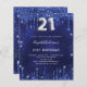 Ein modernes, stilvolles und glamouröses Party zum 21. Geburtstag. Marineblau, mit Imitaten verziert, Staub aus Glitzer. Die blaue Farbe ist ungleichmäßig. Personalisieren Sie Ihren Namen und Ihre Party-Daten und fügen Sie diese hinzu. Nummer 21 ist mit einem ballonartigen Schriftart geschrieben, Drehbuch, silberfarben.