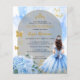 Mit unserem Budget Baby Blue Dress Princess Quinceañera Einladung verkünden Sie Ihre Quinceañera im richtigen Stil. Dieses bezaubernde Design mit zarten Blautönen und funkelnden Akzenten verleiht dem Set den perfekten Rahmen für Ihre Feier.