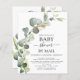Budget Eukalyptus Greenery Sukkulent Botanische Wasserfarbe Geschlechtsneutraler Baby Boy oder Baby Girl Baby Shower by Mail Einladungen auf weißem Hintergrund - beinhaltet schöne und elegante Drehtypografie mit modernen botanischen Blätter und Grün für die besondere Mutter zu feiern.