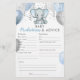 Diese Baby Vorhersage Dusche Spielkarte verfügt über blaue und graue Baby Boy Elefant mit Ballons und Konfetti. Ideal, damit Ihre Gäste mitspielen können.
