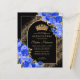 Moderne Klassik Elegant Glam Black Royal Blue Gold Glitzer Sparkle Blumen 15. Geburtstag Quinceanera Einladung