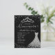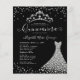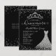 Modern Glam Black Silver Diamond Tiara Prinzessin Gown Dress Glitzer Confetti Sparkle 15. Geburtstag Quinceanera Einladung