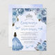 Diese schöne Quinceañera Einladung zeigt eine Grenze von blauen Rose mit silbernen Imitaten Glitzer Blattwerk auf einem blauen Aquarell. Ein silberner Tiara, ein dunkelhaariges Mädchen in einem blauen Prinzessenkleid und kleine blaue Schmetterlinge schmücken den Text. Das Wort "Quinceañera" und der Name des Ehrengast erscheinen in elegantem blauen Schriftsatz, der Rest in grau sans serif Schriftart. Fügen Sie auf der Rückseite zusätzlich einen QR-Code hinzu, um Ihren Gästen zu helfen, Ihre quinceañera Website und UAWG online zu besuchen.