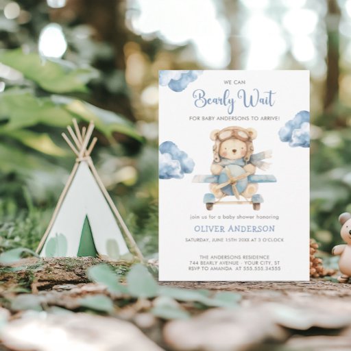 Budget BoyTeddy Bear Babydusche Einladung Boy Teddy Bear Wir können frühzeitig abwarten Baby Dusche Einladung