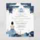 Blumendusty Blauer Aschenputtel Gown Dress Gold Glitzer Sparkle 15. Geburtstag Königliche Quinceanera Einladung