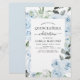 Budget Dusty Blue Floral Rose und Eukalyptus Botanische Vegetation Watercolor Spring oder Summer Quinceañera Celebration Einladungen - beinhaltet schöne und elegante Schrift Typografie mit modernen botanischen Blume und Grün für die besondere 15. Geburtstagsparty.